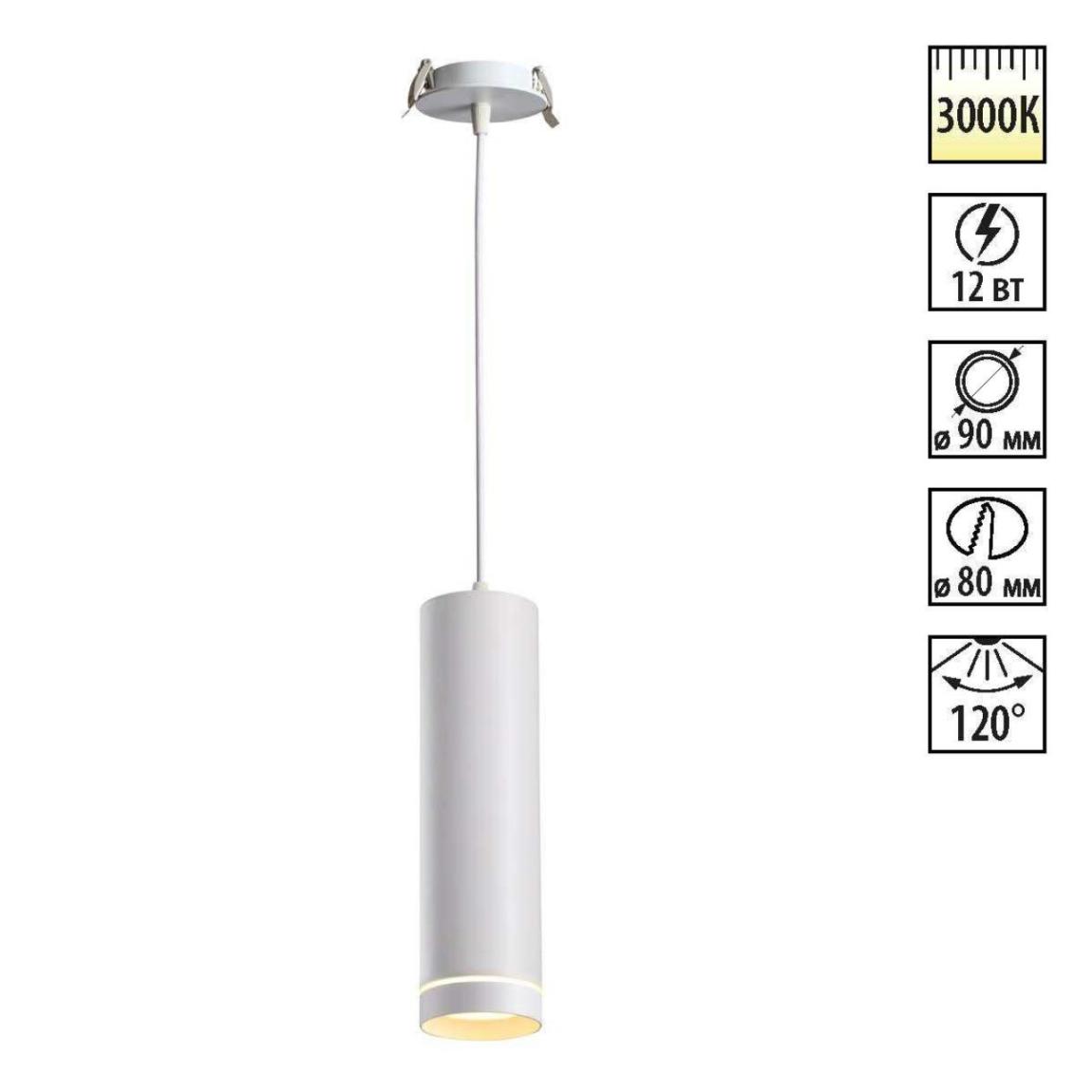 357690 SPOT NT18 451 белый Встраиваемый светильник IP20 LED 3000K 12W 160-265V ARUM