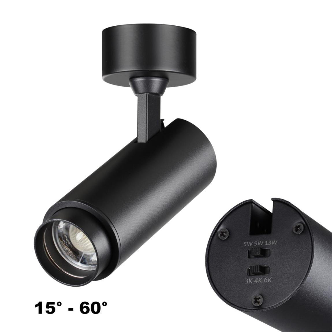 Накладной светодиодный светильник NAIL с переключателем цветовой температуры (3000К-4000К-6000К) и переключателем мощности (5Вт-9Вт-13Вт). А так же с изменяемым углом рассеивания (от 15° до 60°).