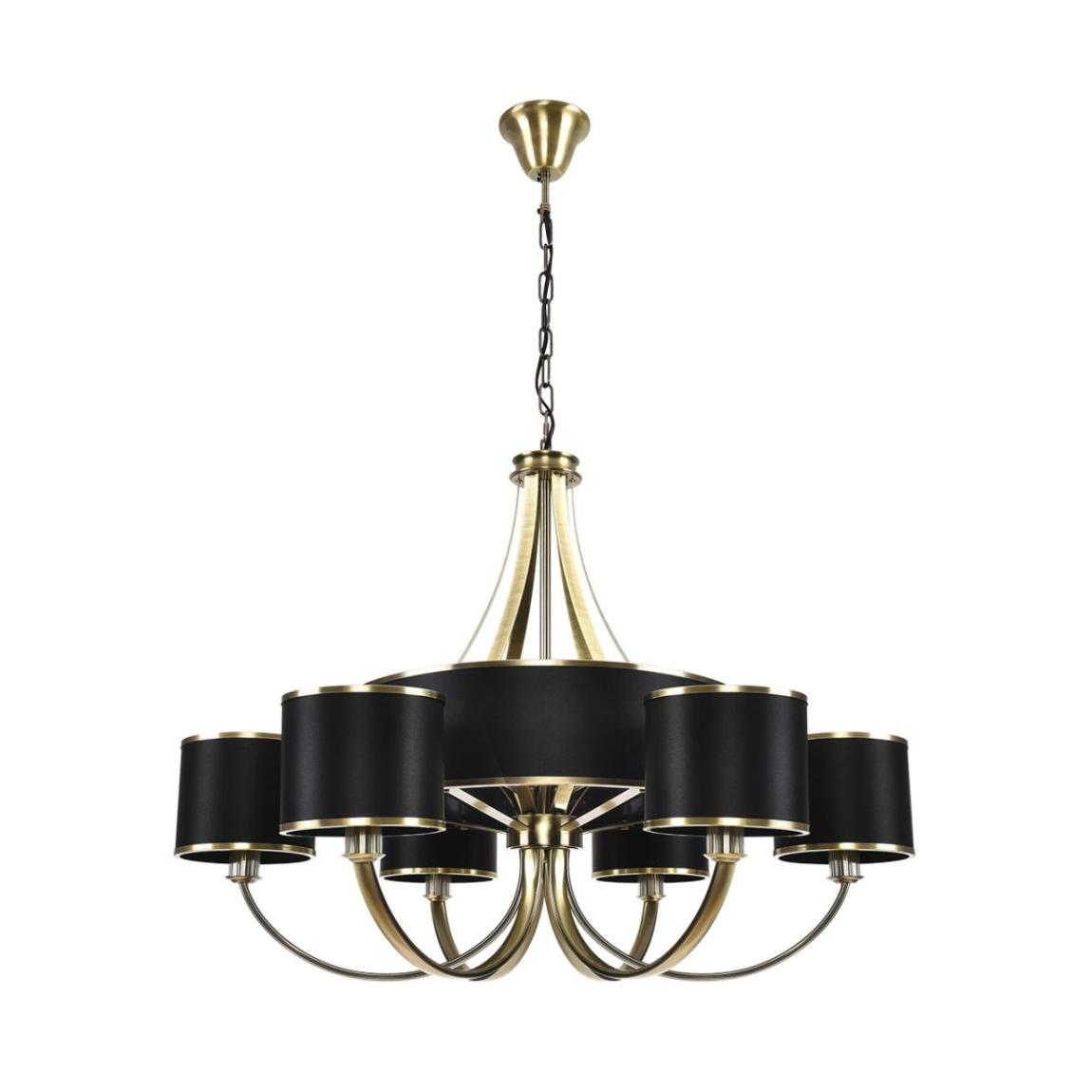Респектабельная и утонченная линия DEMETRA не доминирует в пространстве, но задает тон, подчеркивая статусность интерьера. Черный цвет абажуров добавляет строгости, а металл цвета античная броназ — тепла и гостеприимства. Конструкция состоит из центрального стержня, плавно переходящего в разветвленную основу, которая поддерживает несколько рожков. В центральной части три незаметные лампы G9, которые наполняют теплым светом большой абажур. Внутри каждого малого абажура легко помещается лампа Е14. Форма симметрична, что создает ощущение гармонии  и уравновешенности. Сочетание «теплого» металла и «холодного» черного текстиля создает выразительный эффект, делая люстру универсальной для разных интерьеров.