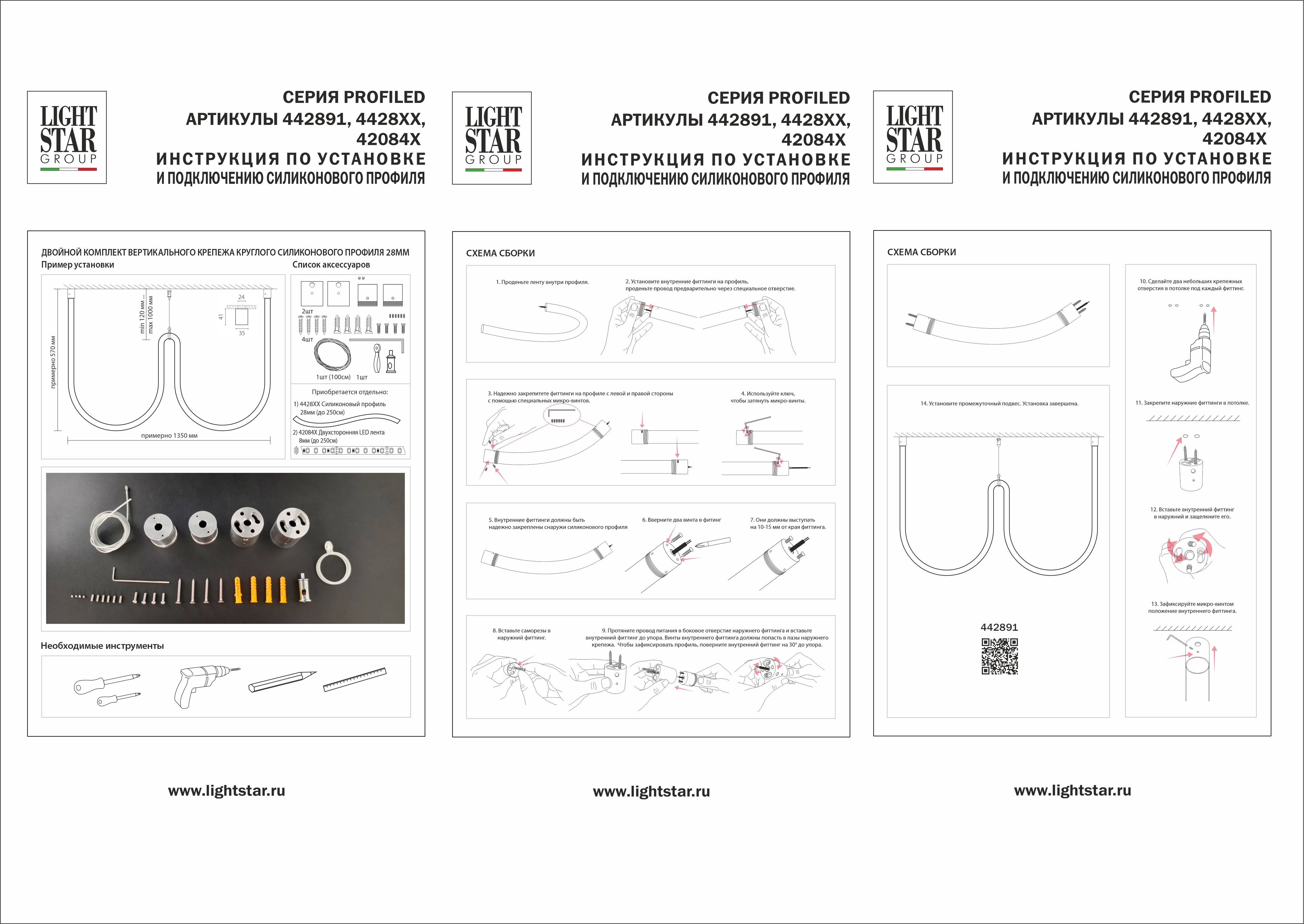 Комплект вертикального крепежа двойной к силикон профилю 4428хх (D28) Profiled Lightstar 442891