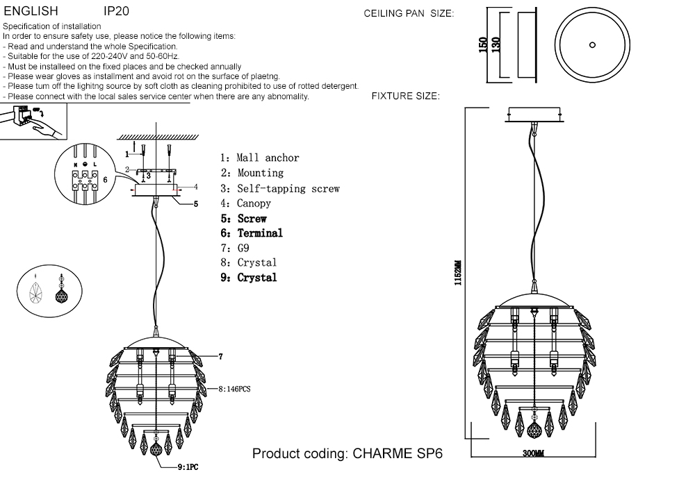 | Материал подвески | Хрусталь |