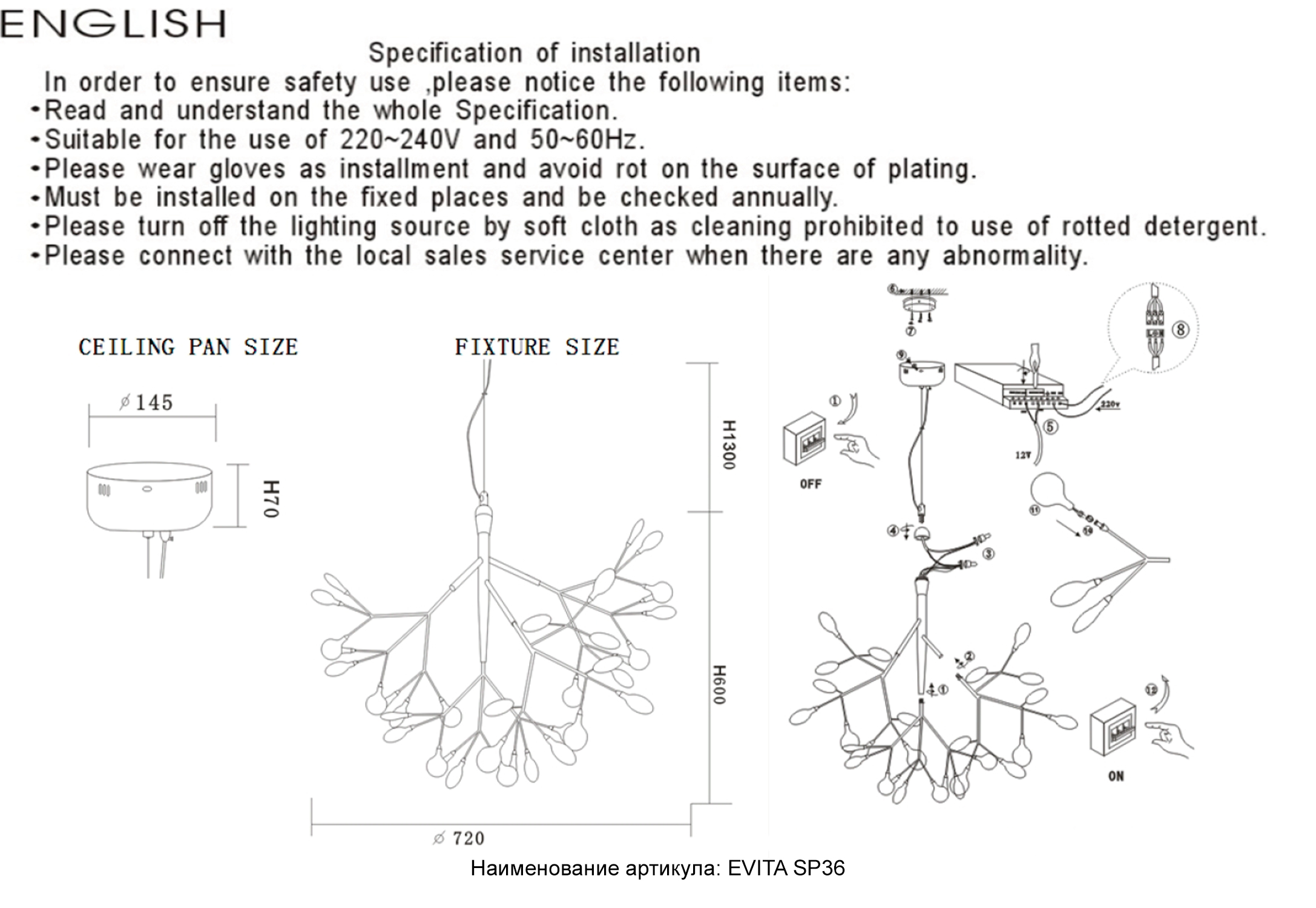 | Светильник диаметр (мм) | 720 |